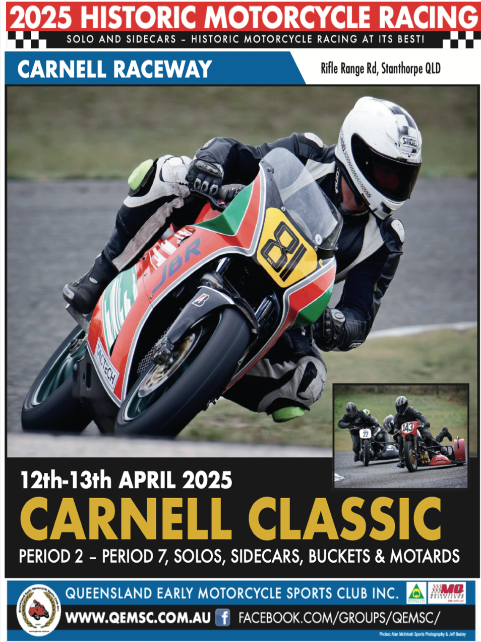 Period 2 – Period 7 solos and sidecars, along with the buckets, mini twins and motards. Entries on ridernet now! ENTER HERE