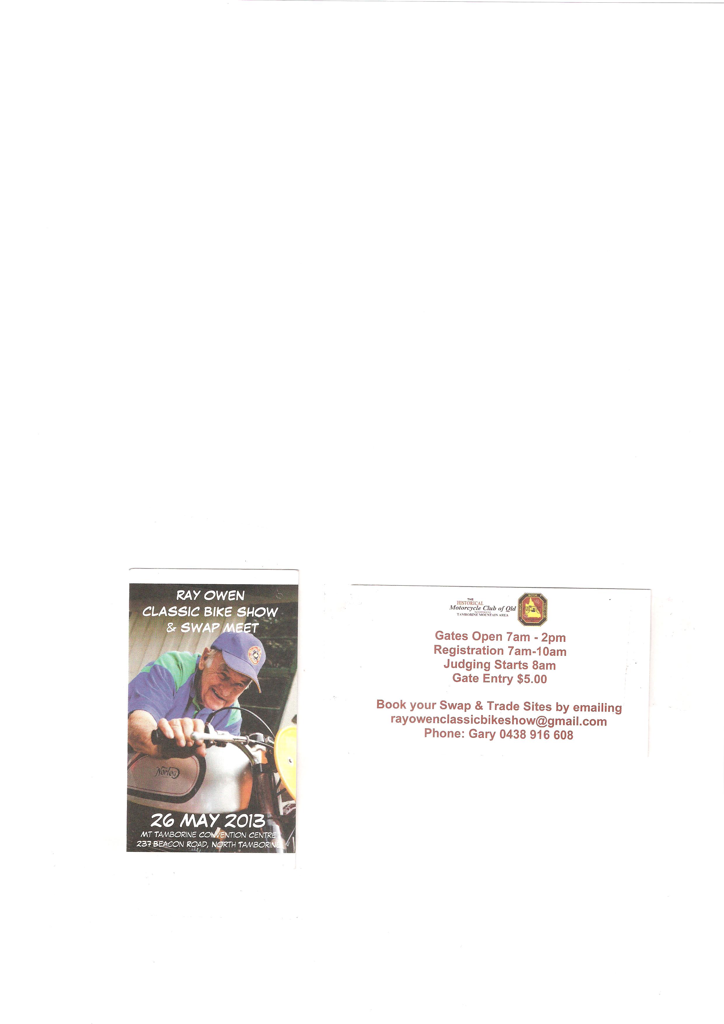 Obi Obi Motorcycle show, Sunday September the 25th. Read more ( loaded 2/8/16 )